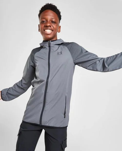 Heathered running jacket for Spring 15. Jacket is Zips off into a vest. Back yoke panel is mesh for ventilation. Fabrication is water resistant and breathable. Additional functions include hidden center back pocket, drawcord at waist, reflective hits and interior media pocket.